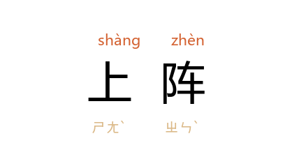 ⒈ 上战场打仗。元·无名氏后亦引申为参与某种竞赛或活动。