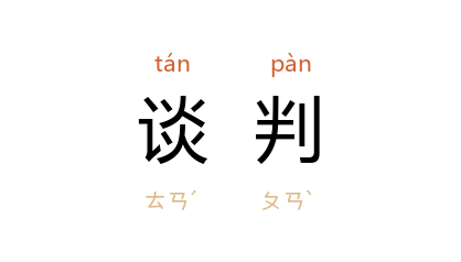 引鲁迅 《彷徨·孤独者》:“并力作一回极严厉的谈判。”魏巍 《东方》第五部第一章:“在这种情势下,于七月十日敌人被迫接受了停战谈判。”