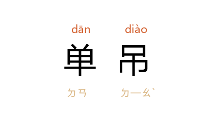 ⒉ 麻将牌戏中最后只剩一张,待自摸或经人打出成对而和者,称为“单吊”。