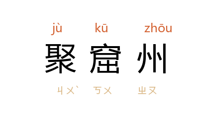 ⒈ 神话传说中的地名。《海内十洲记·聚窟州》载:聚窟洲在西海中申未之地,地方三千里,北接昆仑二十六万里,去东岸二十四万里,上多真仙灵官,宫第比门,不可胜数。