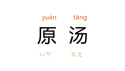 ⒈ 指煮熟某种食物时用的原锅汤汁。
