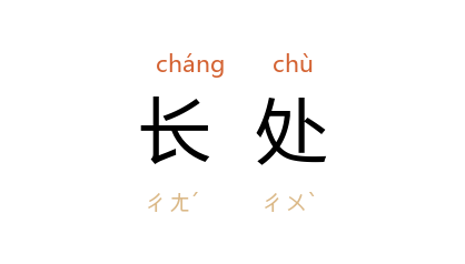 引《二十年目睹之怪现状》第七九回:“只有一样长处,出来见了人,那周旋揖让,是很在行的。”毛泽东 《中国共产党第八次全国代表大会开幕词》:“国无论大小,都各有长处和短处。”