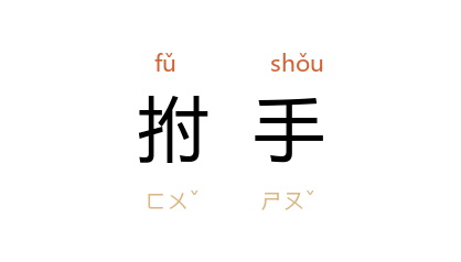 《三国演义·第九七回》:「当此时,曹操拊手,谓天下已定。」
