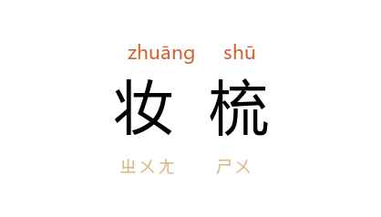 梳妆打扮。 唐 王昌龄 《殿前曲》诗之一:“贵人妆梳殿前催,香风吹入殿后来。”
