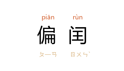 引宋 洪迈 《容斋续笔·姑舅为婚》:“惟 西魏 文帝 时,禁中外及从母兄弟姊妹为婚, 周武帝 又詔不得娶母同姓以为妻妾, 宣帝 詔母族絶服外者听婚,皆偏闰之制。”宋 岳珂 《桯史·阜城王气》:“居一年,犹云气故在,特稍晦,将为偏闰之象,而不克有终。”明 胡应麟 《少室山房笔丛·经籍会通四》:“六朝、五季,偏闰劻勷; 魏、辽、金、元,夷狄僭窃。”