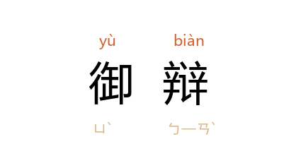 引语本《庄子·逍遥游》:“若夫乘天地之正,而御六气之辩。”郭象 注:“御六气之变者,即是游变化之涂也。”南朝 齐 谢朓 《三日侍宴曲水代人应诏》诗:“於皇克圣,时乘御辩。”北周 庾信 《喜晴应诏》诗:“御辩诚膺録,维皇称有建。”