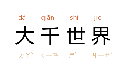 例合四大洲七山八海为一小世界,合小世界一千曰小千世界。合小千世界一千,曰中千世界。合中千世界一千,曰大千世界。其成立及破灭,皆属同时。——《智度论及具舍论》