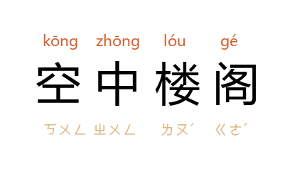 ⒈ 空中所见的楼台观阁。比喻脱离现实的幻想,不能实现,没有意义。