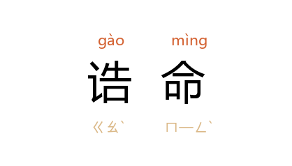 ⒈ 古时朝廷颁赐爵位的诏令。如明制为一品至六品皆授以诰命,清制则为一品至五品授以诰命。