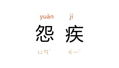 引《左传·昭公二十年》:“外内颇邪,上下怨疾,动作辟违,从欲厌私。”《三国志·魏志·公孙度传》:“渊 亦恐 权 远不可恃”裴松之 注引 三国 魏 鱼豢 《魏略》:“权 之怨疾,将刻肌骨。”《资治通鉴·唐宪宗元和十一年》:“南詔 劝龙晟 淫虐不道,上下怨疾, 弄栋 节度使 王嵯巔 弑之,立其弟 劝利。”