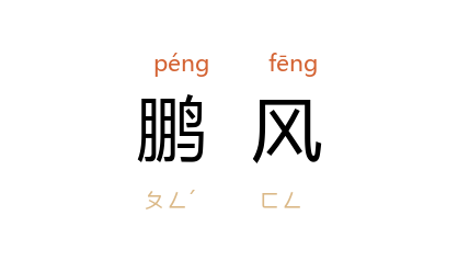 ⒈ 《庄子·逍遥游》:“﹝鹏﹞抟扶摇而上者九万里。”王先谦集解:“《尔雅》:'扶摇谓之飙。'郭注:'暴风从下上。'”后以“鹏风”指迅速上旋的大风。