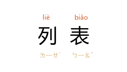 ⒈ 将文字、数字等资料以表格形式依次呈现。