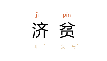 引唐 皮日休 《金钱花》诗:“阴阳为炭地为炉,铸出金钱不用模。莫向人间逞颜色,不知还解济贫无?”《三国演义》第十一回:“竺 因此广捨家财,济贫拔苦。”