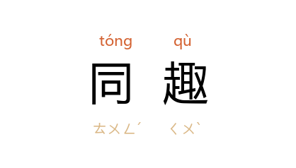 引三国 魏 嵇康 《琴赋》:“初若将乖,后卒同趣。”晋 袁宏 《三国名臣序赞》:“名节殊途,雅致同趣。”唐 柳宗元 《始得西山宴游记》:“意有所极,梦亦同趣。”王西彦 《古屋》第一部四:“或许我们可能成为一对生活上的同趣者,一对情投意和的好知己。”