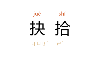⒈ 古代射箭用具。抉即扳指;拾即臂衣,套于左臂上用以护臂。 鲍彪 本抉作“决”。