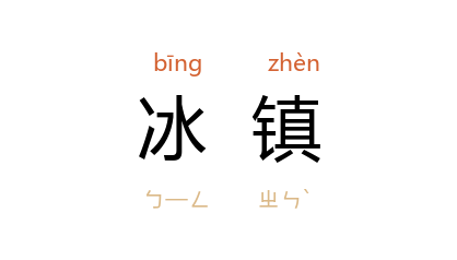 引曹禺 《雷雨》第二幕:“妈,您坐一坐。我给您倒一杯冰镇的开水。”老舍 《四世同堂》四一:“他不肯坐下喝茶,而只在极渴的时候,享受一碗冰镇的酸梅汤。”