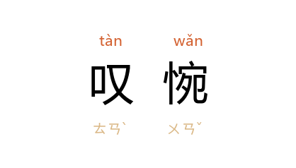 嗟叹惋惜。 清 蒲松龄 《聊斋志异·侠女》:“方悽然欲询所之,女一闪如电,瞥尔间遂不復见。生嘆惋木立,若丧魂魄。”