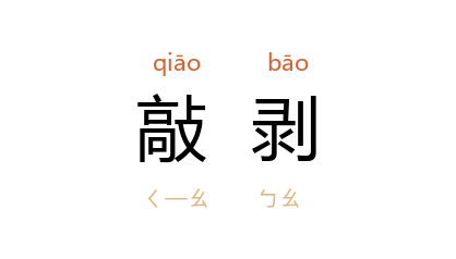 引清 黄宗羲 《明夷待访录·原君》:“敲剥天下之骨髓,离散天下之子女,以奉我一人之淫乐。”《二十年目睹之怪现状》第九四回:“安徽 百姓穷,禁得住几回敲剥!”范文澜 蔡美彪 等《中国通史》第三编第五章第一节:“这些九姓胡对东西方贸易的大利当然看得眼红,他们……获利总是极厚,厚利的来源主要是敲剥 唐 人。”