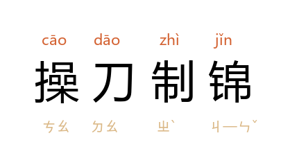 引唐 杨炯 《益州温江县令任君神道碑》:“实谓枢机八座,上下三阶,岂惟缚柱鞭丝,操刀製锦。”宋 王安石 《贺知县启》:“操刀之能製锦,素显殊勛;弹琴之不下堂,行闻异政。”明 皇甫汸 《过武城言子祠》诗:“谅乏操刀资,惧貽製锦羞。”