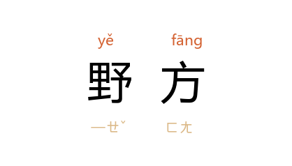 引宋 无名氏 《张协状元》戏文第四二出:“野方久居深院,长守幽闺。若得随夫人到任,多少是好。”宋 无名氏 《张协状元》第四五出:“[丑]只教养娘扶出来看便了。[外]野方,你去扶它出来。”