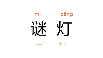 引《二十年目睹之怪现状》第七五回:“在门外谜灯底下,设了桌椅笔砚,凡是射的都把谜面条子撕下,把所射的写在上面,由家人拿进来看。”阿英 《灯市》:“寺观壁上,幌着谜灯,谁都可以立在那里猜。”