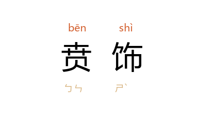 引旧题 汉 伶玄 《赵飞燕外传》:“后姊弟母事 阳华,阳华 善賁饰。”《南齐书·高逸传·明僧绍》:“齐郡 明僧绍 标志高栖,躭情坟素,幽贞之操,宜加賁饰。”明 唐顺之 《答顾东桥少宰书》:“非谓本无可以致誉,而朋友为之賁饰,以私於其好也。”