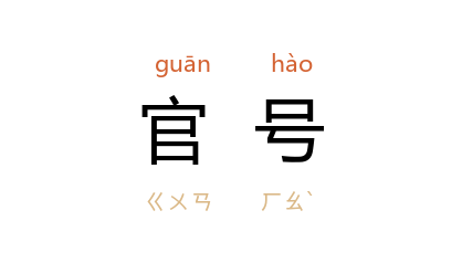 引《史记·匈奴列传》:“然至 冒顿 而 匈奴 最彊大,尽服从北夷,而南与中国为敌国,其世传国官号,乃可得而记云。”宋 曾巩 《请改官制前预令诸司次比整齐架阁版籍等事》:“臣伏以陛下发德音,正官号,法制度数,皆易以新书,太平之原,实在於此。”章炳麟 《文学说例》:“夫惟官号地望,著於标题,施於传誌谱録者,必用今名。”
