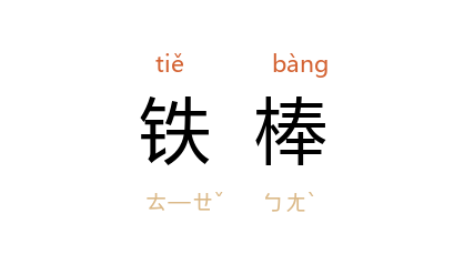 引《大唐三藏取经诗话中》:「左肋判八百,右肋判三千铁棒,配在花果山紫云洞。」《三国演义·第六三回》:「吾夜梦一神人,手执铁棒击吾右臂,觉来犹自臂痛。」