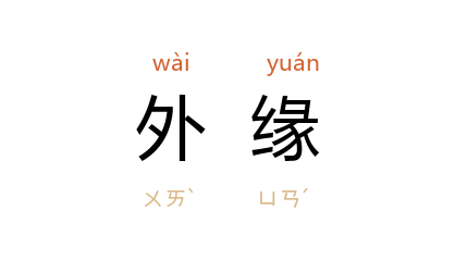 ⒈ 佛教用语:(1) 谓外在条件。南朝梁·真谛译〈大乘起信论〉:「若虽有外缘之力,而内净法未有熏习力者亦不能究竟厌生死苦乐求涅槃。」(2) 谓世俗的利益。唐·白居易〈朝归书寄元八〉诗:「自此聊以适,外缘不能干。」
