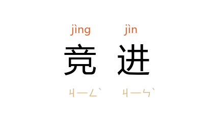 引《楚辞·离骚》:“众皆竞进以贪婪兮,凭不厌乎求索。”游国恩 纂义引 陈第 曰:“竞,争也。”汉 王充 《论衡·程材》:“竞进不案礼,废经不念学。”宋 苏轼 《王维吴道子画》诗:“蛮君鬼伯千万万,相排竞进头如黿。”清 黄遵宪 《纪事》诗:“千头万头动,竞进如排墙。”