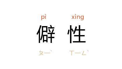 引唐 姚合 《拾得古砚》诗:“僻性爱古物,终岁求不获。昨朝得古砚, 黄河 滩之侧。”明 查士标 《雪后同方宝臣张谐石游北固》诗:“僻性从来厌市闤,投閒山寺岁将残。”王西彦 《乡下朋友》:“这是他的僻性,房子必须安排整齐洁浄,饶有诗趣,才能够安心定神。”