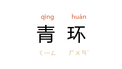引唐 白居易 《游悟真寺诗》:“蓝水色似蓝,日夜长潺潺。周迴绕山转,下视如青环。”宋 梅尧臣 《淮阴》诗:“青环瘦铁缆,繫在 淮阴 城。水脛多长短,林枝有直横。”