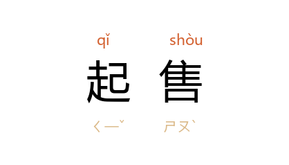 ⒈ 出售物品的最少数量或最低金额。香菇半两起售。