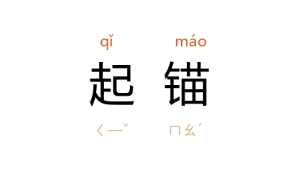 ⒈ 吊起沉在海底的铁锚,为船只开航的准备工作。亦可指船启航。
