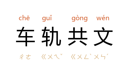 ⒈ 车同轨,书同文。指统一。