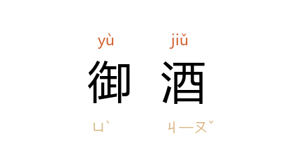 引三国 魏 曹植 《大魏篇》:“御酒停未饮,贵戚跪东厢。”唐 李暠 《奉和圣制送张说上集贤学士赐宴》诗:“天厨千品降,御酒百壶催。”清 赵翼 《瓯北诗话·诗人佳句》:“张士诚 既降 元,元 帝赐以龙衣御酒。”《镜花缘》第五回:“今特降旨:……即赐金牌一面,并赏御酒三杯。”