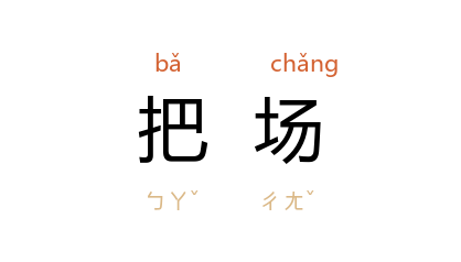 ⒈ 戏剧界新演员初次上场时,常因紧张过度,忘掉台辞,或走错台步,需要有师傅或先进在旁提醒,以便立时更正,称为「把场」。