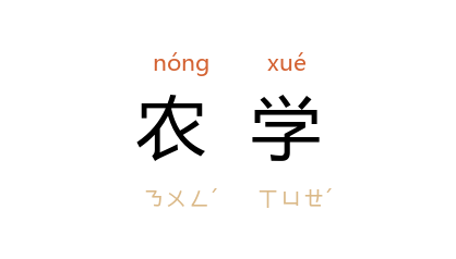 ⒈ 指研究农业生产的科学。内容包括作物栽培、育种、土壤、气象、肥料、农业病虫害等。