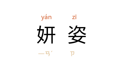 引三国 魏 曹丕 《善哉行》:“妍姿巧笑,和媚心肠。”唐 沉既济 《任氏传》:“其妍姿美质,歌笑态度,举措皆艷。”明 吴承恩 《陌上佳人赋》:“吾闻在昔 西子 妍姿擅称,使生于今,与斯人未知伯仲。”
