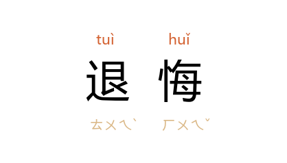引南唐 冯延巳 《醉花间》词:“人心情绪自无端,莫思量,休退悔。”《水浒传》第八七回:“汝等众兄弟,皆宜努力向前,勿生退悔。”清 东轩主人 《述异记·遇仙得瘖》:“此子有向道心,且有厄,余故欲度之,今忽有不净心,旋生退悔,故罚之耳。”
