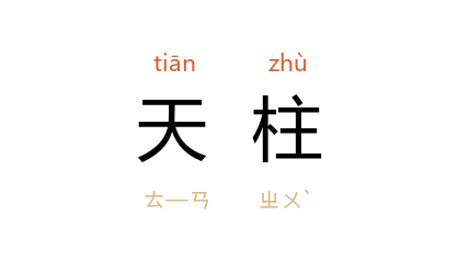⒈ 古代传说中,天空是由不周山、昆仑山等八座高山支撑著,称为「天柱」。