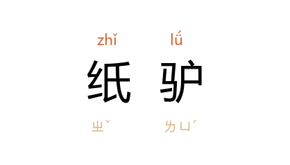 ⒈ 《太平广记》卷三十引唐张读《宣室志·张果》:“张果者,隐于恒州条山……果常乘一白驴,日行数万里,休则重迭之,其厚如纸,置于巾箱中,乘则以水噀之,还成驴矣。”事亦见唐郑处诲《明皇杂录》卷下。按,张果,新、旧《唐书》皆有传,俗称张果老,传狵Y八仙之一。因以“纸驴”为仙家坐骑的代称。