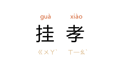 引《水浒传》第六八回:“令大小头领,人人挂孝,个个举哀。”《醒世恒言·徐老仆义愤成家》:“令合家掛孝,开丧受弔。”周立波 《暴风骤雨》第二部二三:“瞅她,还挂孝呢!”