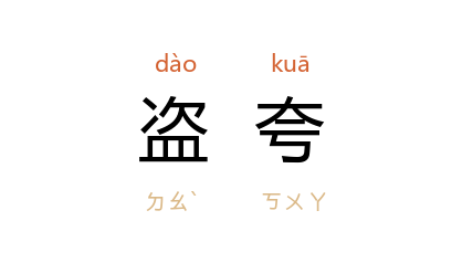 ⒈ 犹盗魁。指取富贵或名位不以其道者。《老子》:“服文彩,带利剑,厌饮食,财货有余,是谓盗夸,非道也哉!”王弼注:“凡物不以其道得之,则皆邪也,邪则盗也;夸而不以其道得之,窃位也。故举非道,以明非道财皆盗夸也。”魏源本义:“盗夸《韩非子》作'盗竽'。案:古韵虞、麻通用,则'竽'、'夸'皆协韵。《说文》'竽'、'夸'皆亏声。盖篆文'于'作'亏',是以形近致误。”高亨正诂:“'夸'、'竽'同声系,古通用。据韩说,盗竽犹今言盗魁也。竽以乐喻,魁以斗喻,其例正同。”一说,强盗为服饰以夸于人。河上公注:“百姓不足而君有余者,是由劫盗以为服饰,持行夸人,不知身死家破、亲戚并随也。”参见“盗竽”。
