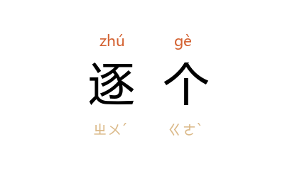 引《醒世恒言·蔡瑞虹忍辱报仇》:“秦小元 道:‘哥不要吃单杯,吃个双双到老。’又送过一杯, 陈小四 又接来吃了。也筛过酒,逐个答还。”徐怀中 《西线轶事》十:“一号笑呵呵地逐个儿望着六个女电话兵,使她们在那样亲切爱抚的目光下有些不好意思了。”