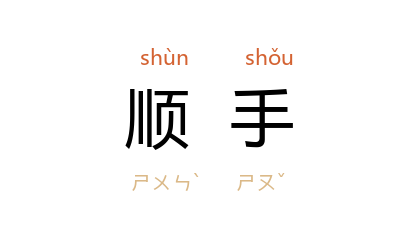 顺手,顺手儿[ shùn shǒu,shùn shǒu ér ]