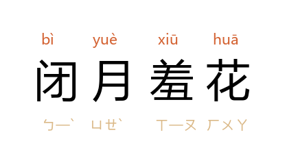 ⒈ 形容女子容貌姣好,足使花、月为之退掩、失色。元·王实甫也作「蔽月羞花」、「花闭月羞」、「羞花闭月」、「月闭花羞」。