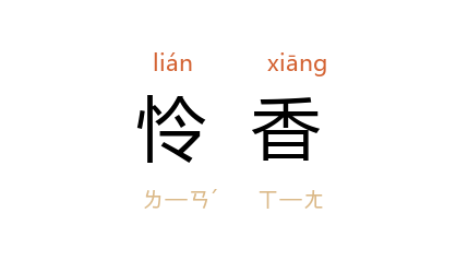 引唐 徐夤 《蝴蝶》诗:“防患每忧鸡雀口,怜香偏遶綺罗衣。”清 李渔 《蜃中楼·双订》:“看他怜香至性,惜玉真情,料不把虚言相誑。”