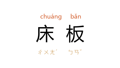 ⒈ 通常铺在床的弹簧屉和草垫褥之间的硬且薄的宽木板。