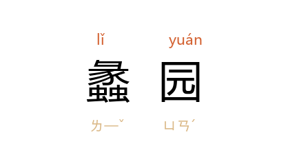 ⒈ 江苏省无锡市的著名园林。因蠡湖(即五里湖)而得名。1952年新建长廊连接原蠡园及渔庄,总称蠡园。布置优美玲珑,以假山著名,为太湖游览胜地。
